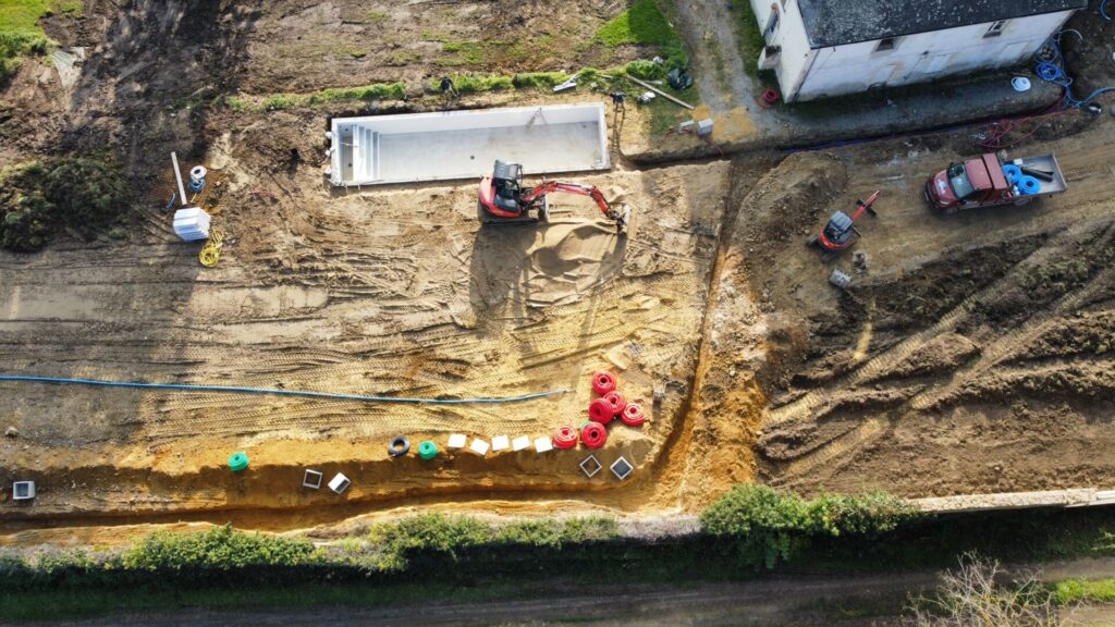 Une piscine de nage s’intègre discrètement à l'arrière du château. Sa ligne épurée s’inscrit dans le respecte de l'histoire du site, offrant un espace de détente en parfaite continuité avec le paysage du château ouvert sur les perspectives lointaines. Pour structurer les espaces et ancrer le projet dans son environnement, un double alignement d’oliviers a été planté. Ces arbres, emblématiques du bassin méditerranéen, apportent une touche de caractère et de luminosité grâce à leur feuillage argenté.
