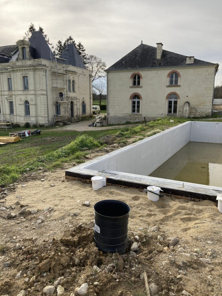L’entrée du château a été entièrement repensée. Un portail en fer forgé sur mesure vient désormais marquer le seuil du domaine, associant élégance, authenticité et savoir-faire artisanal. Cet élément souligne la dimension patrimoniale du lieu tout en structurant l’accès principal. Au centre de la composition, un bassin miroir d’eau crée un effet visuel saisissant. Véritable miroir du ciel et des façades, il met en valeur les volumes du château et renforce les perspectives du jardin. Ce miroir d’eau devient un élément fort du design paysager, entre classicisme et modernité.